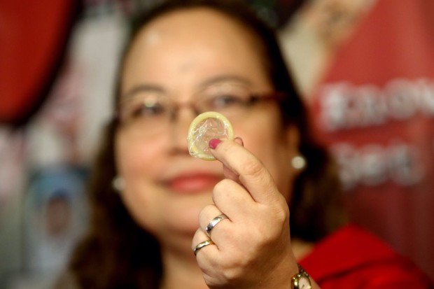 | Health Secretary Paulyn Ubial encourages the use of condom to stop the spread of HIV during press briefing in Paranaque City. PDI Photo / Richard A. Reyes |